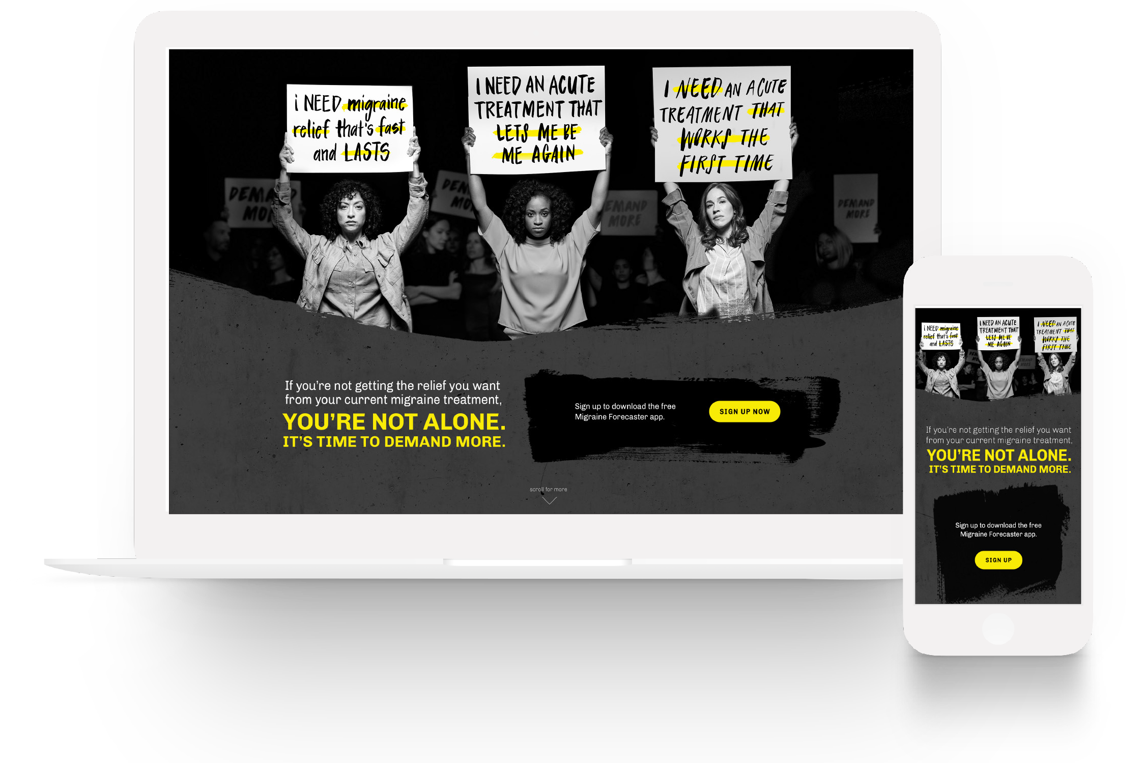 we created a compelling unbranded campaign showing frustrated Migraine sufferers demanding a better alternative to current migraine treatments.